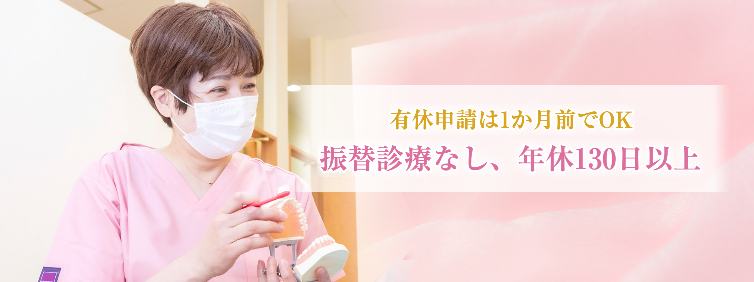 さらに祝日は休診日とし、振替診療も行っていません。年間休日は130日以上で、一般的な歯科医院よりも多めの設定です。十分に休みをとれるので、プライベートの時間を思う存分楽しめるでしょう。オンとオフをしっかり区別して、充実した日々をお過ごしください。